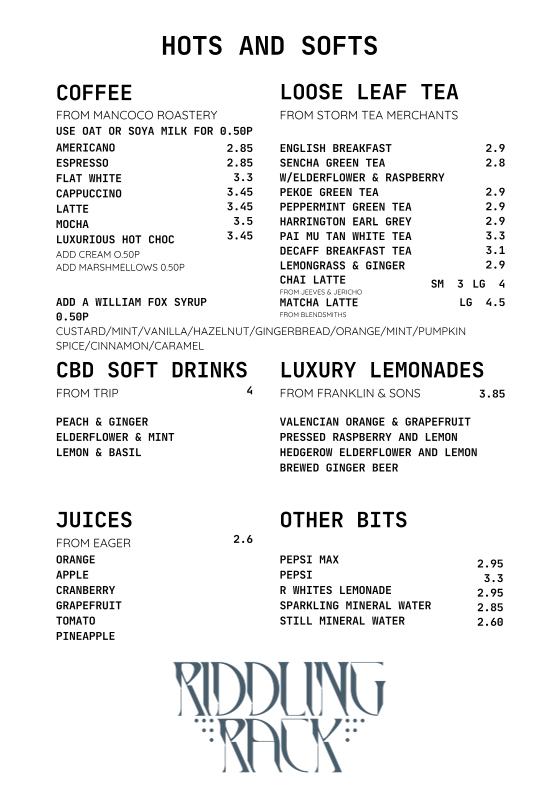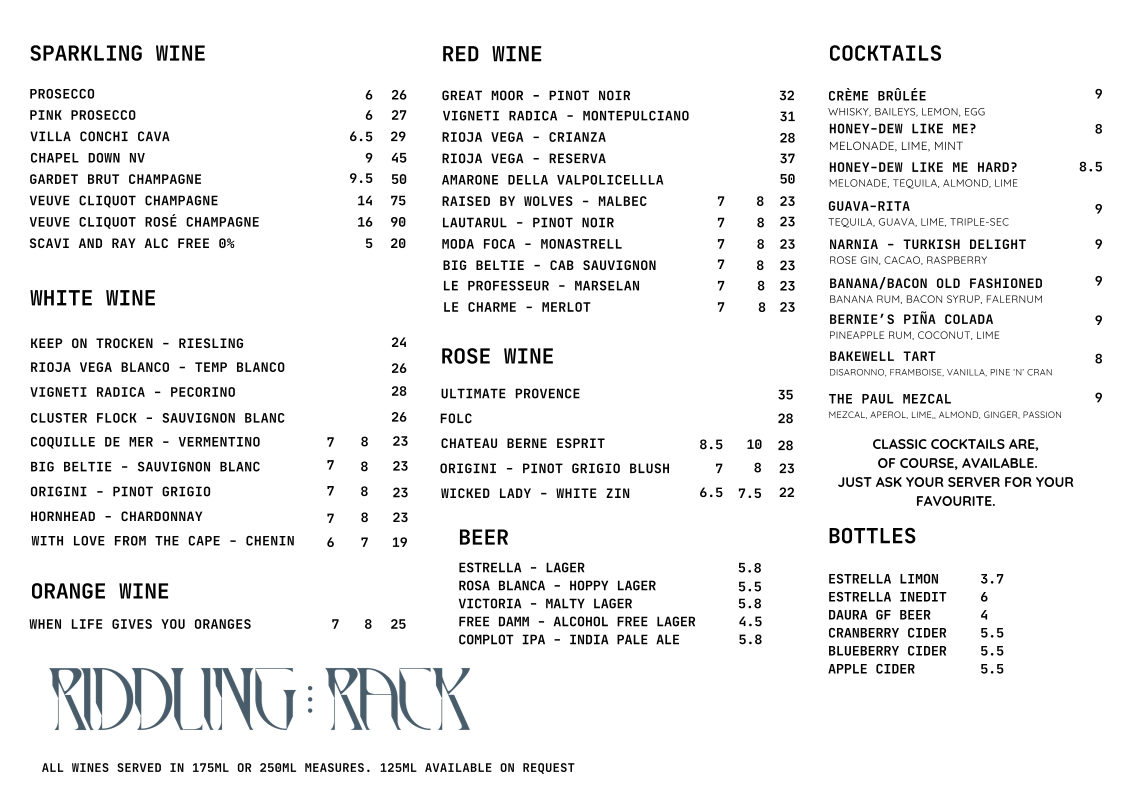Whether you're after a light bite, a comforting meal, or a refreshing drink, Riddling Rack caters to all with an array of thoughtfully crafted dishes and drinks, making it a perfect spot for any occasion.